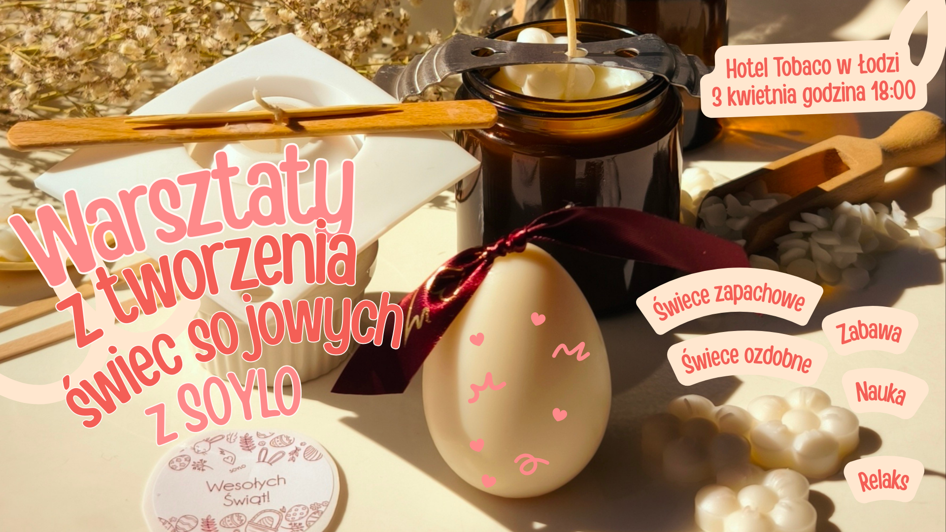 Jeśli czujesz, że to coś dla Ciebie – mam dobrą wiadomość! Już 3 kwietnia odbędą się kolejne warsztaty, tym razem z tworzenia świec sojowych.