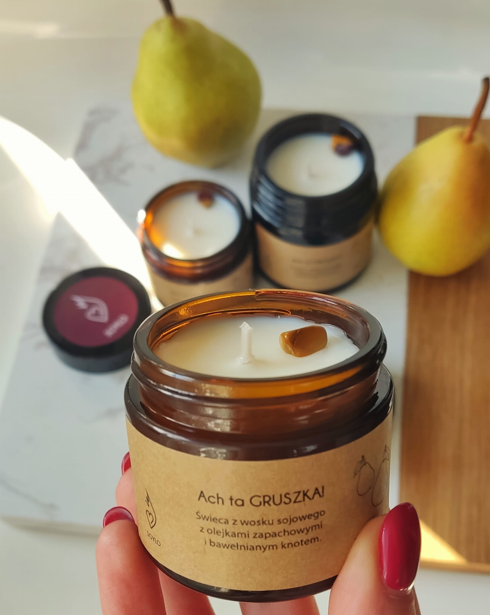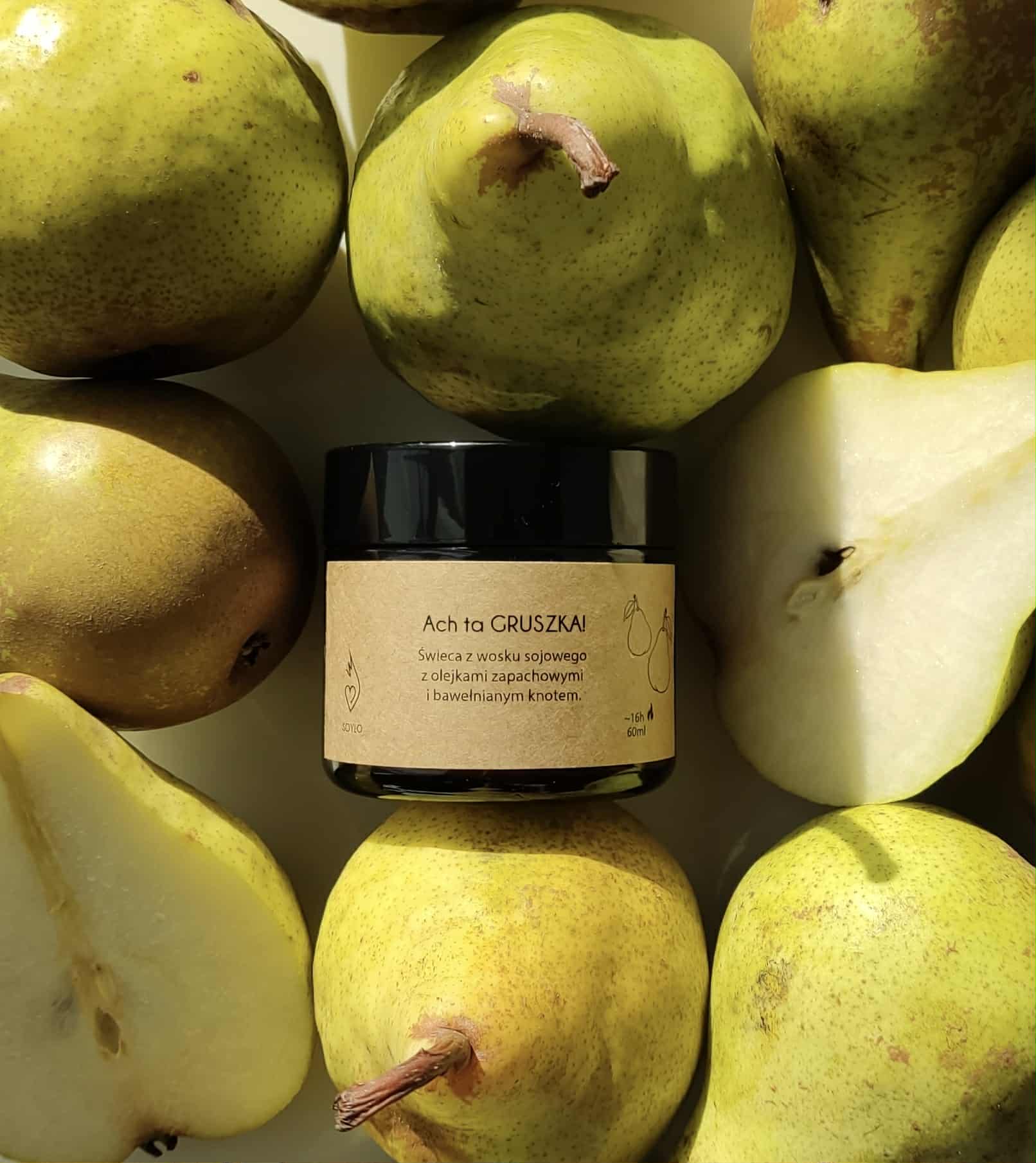 Wspaniały lekki i słodki zapach - jesienna świeca o zapachu gruszki i przypraw korzennych.