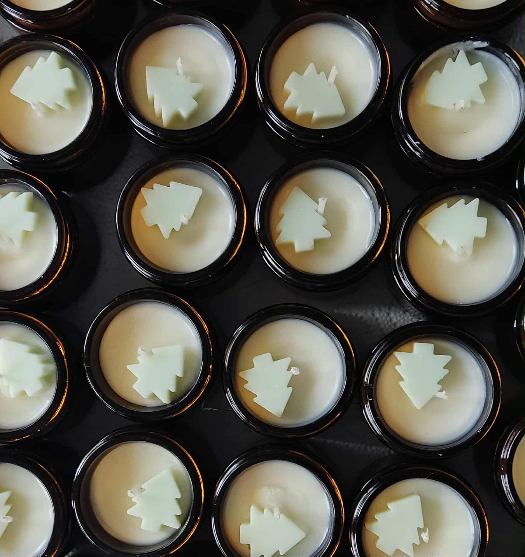 Knot bawełniany, dekorowany choinką z wosku sojowego.